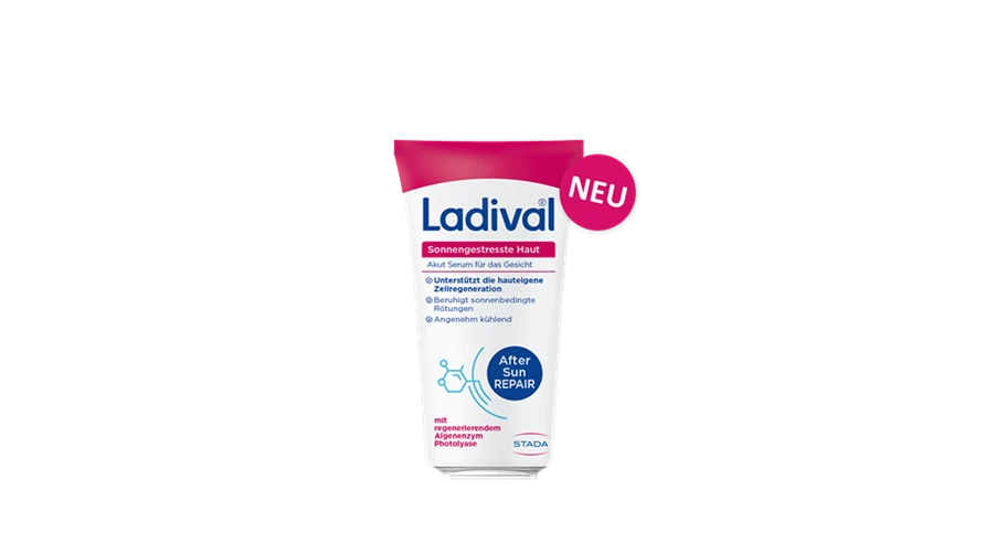 Photolyase ist ein natürliches Enzym, das aus der Blaualge stammt. Man verwendet es in Produkten wie der Ladival® Sonnengestresste Haut Akut-Serie. Es unterstützt die Regeneration der Haut, die beispielsweise durch die Sonne strapaziert wurde. Nach einer akuten Sonneneinstrahlung hilft die Photolyase dabei, DNA-Schäden, die durch UV-Strahlung entstanden sind, zu reparieren. Sie löst verklebte DNA-Basen auf und beruhigt dadurch sonnenbedingten Juckreiz und Spannungsgefühle. Das Enzym nutzt den natürlichen Mechanismus der Photoreaktivierung. So vermeidet es Hautschäden durch UVB-Strahlung und fördert die hauteigene Regeneration.