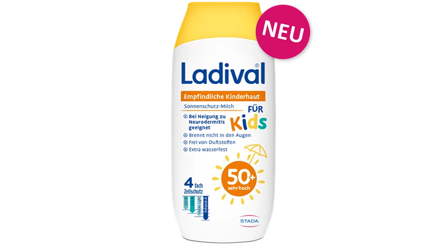 Die Ladival®-Serie Empfindliche Kinderhaut wurde speziell für die Bedürfnisse zarter Baby- und Kinderhaut entwickelt. Die reichhaltige Öl-in-Wasser-Emulsion spendet Feuchtigkeit und pflegt mit Dexpanthenol, ohne dabei zu kleben. Sie ist für Baby- und Kinderhaut ab 6 Monaten sowie bei zu Neurodermitis neigender Haut geeignet und brennt nicht in den Augen. Zudem ist die Sonnenmilch für Kinder extra wasserfest, hat einen sehr hohen Lichtschutzfaktor (50+) und ist korallenfreundlich, was sie zum idealen Begleiter für den nächsten Urlaub mit Kindern macht.