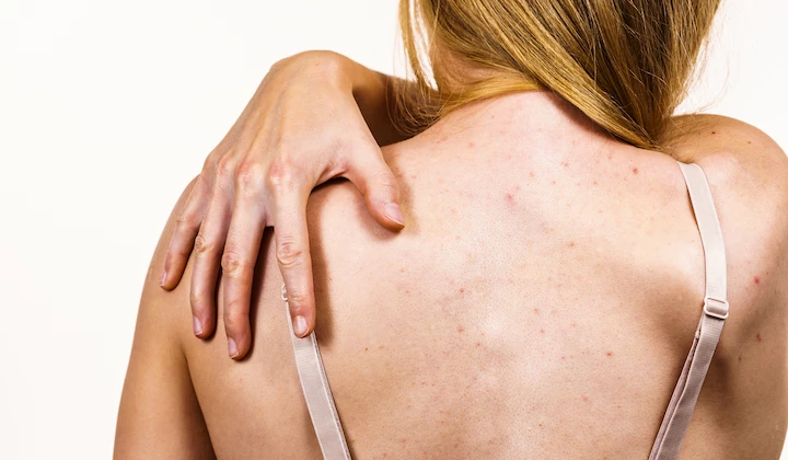 Mallorca-Akne zeigt sich meist nach dem ersten intensiven Sonnenkontakt an Körperstellen, die der Sonne direkt ausgesetzt waren: